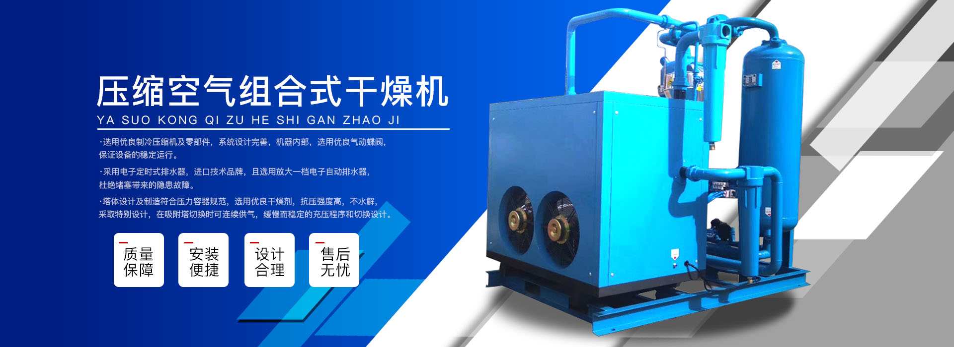 本公司系中國科學院、重鋼院、機電技術設計院、氣動技術研究所等相關專家合作的具有雄厚技術力量的高科技實體,是一個專業(yè)從事各種氣體干燥凈化及分離純化設備研究開發(fā)及推廣應用的高科技公司。公司積多年對壓縮空氣凈化設備的生產技術和銷售經驗,并在消化吸收國外先進技術的基礎上,結合國內實際工況特點,研制出適合國內外廣大用戶的“滬盛”牌HSD系列壓縮空氣冷凍式干燥機、吸附式干燥機、后部冷卻器、預冷機組、工業(yè)用冷水機組和HF系列壓縮空氣高效精密過濾器(國產濾殼,美國漢克森HANKISON濾芯)等13大系列計300多種規(guī)格產品。并且新研發(fā)出燥式干器, 廣泛應用于電力、冶金、電子、機械、石油、化工、汽車制造、紡織、化纖、輕工、造紙、橡膠、儀表、食品、空氣、卷煙、生物、醫(yī)藥、日化等行業(yè),在國內同行業(yè)中一直處于領先地位。